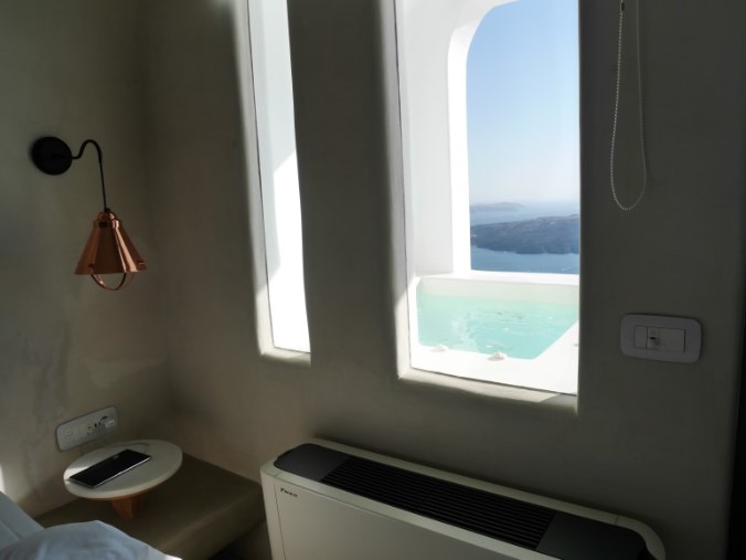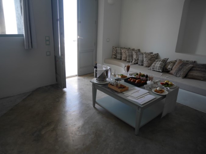(산토리니-안드로니스럭셔리부티끄, 이아마을에 위치, 디테일한 서비스와 조식이 대박이다. 웰컴샹그리아가 나오고,웰컴샴페인이 제공된다. 침대가 좋고, 베개도 쿠션타입에 따라 선택을 할 수 있다. 직원들이 손편지를 주고, 자체 수비니어도 한봉지 챙겨준다. 조식은 가지수가 무척이나 많다는 것. 그치만 생각보다 럭셔리하지 않다는 것이 문제, 오래된 건물에 덧칠만 해서 그런지 실내자쿠지에서 수영하고 나왔더니 검정페인트가 수영복에 다 묻어나왔다.)