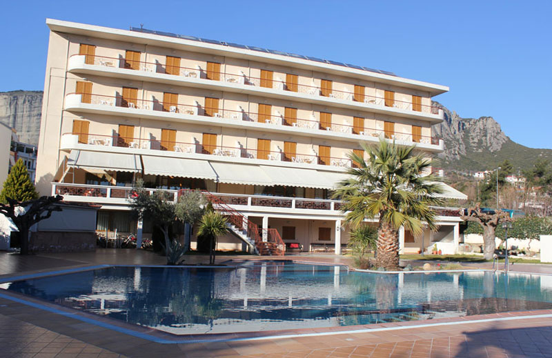 This 3 star hotel is located in the city centre of Kalambaka and was established in 1997. It is a short drive away from the Meteora. The Hotel has a restaurant, a bar, a conference room, a coffee shop and an outdoor swimming pool. All 100 rooms are equipped with hairdryer, safe air conditioning.
