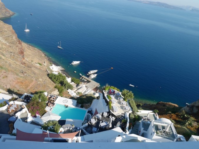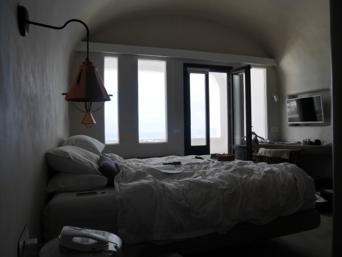 (산토리니-안드로니스럭셔리부티끄, 이아마을에 위치, 디테일한 서비스와 조식이 대박이다. 웰컴샹그리아가 나오고,웰컴샴페인이 제공된다. 침대가 좋고, 베개도 쿠션타입에 따라 선택을 할 수 있다. 직원들이 손편지를 주고, 자체 수비니어도 한봉지 챙겨준다. 조식은 가지수가 무척이나 많다는 것. 그치만 생각보다 럭셔리하지 않다는 것이 문제, 오래된 건물에 덧칠만 해서 그런지 실내자쿠지에서 수영하고 나왔더니 검정페인트가 수영복에 다 묻어나왔다.)