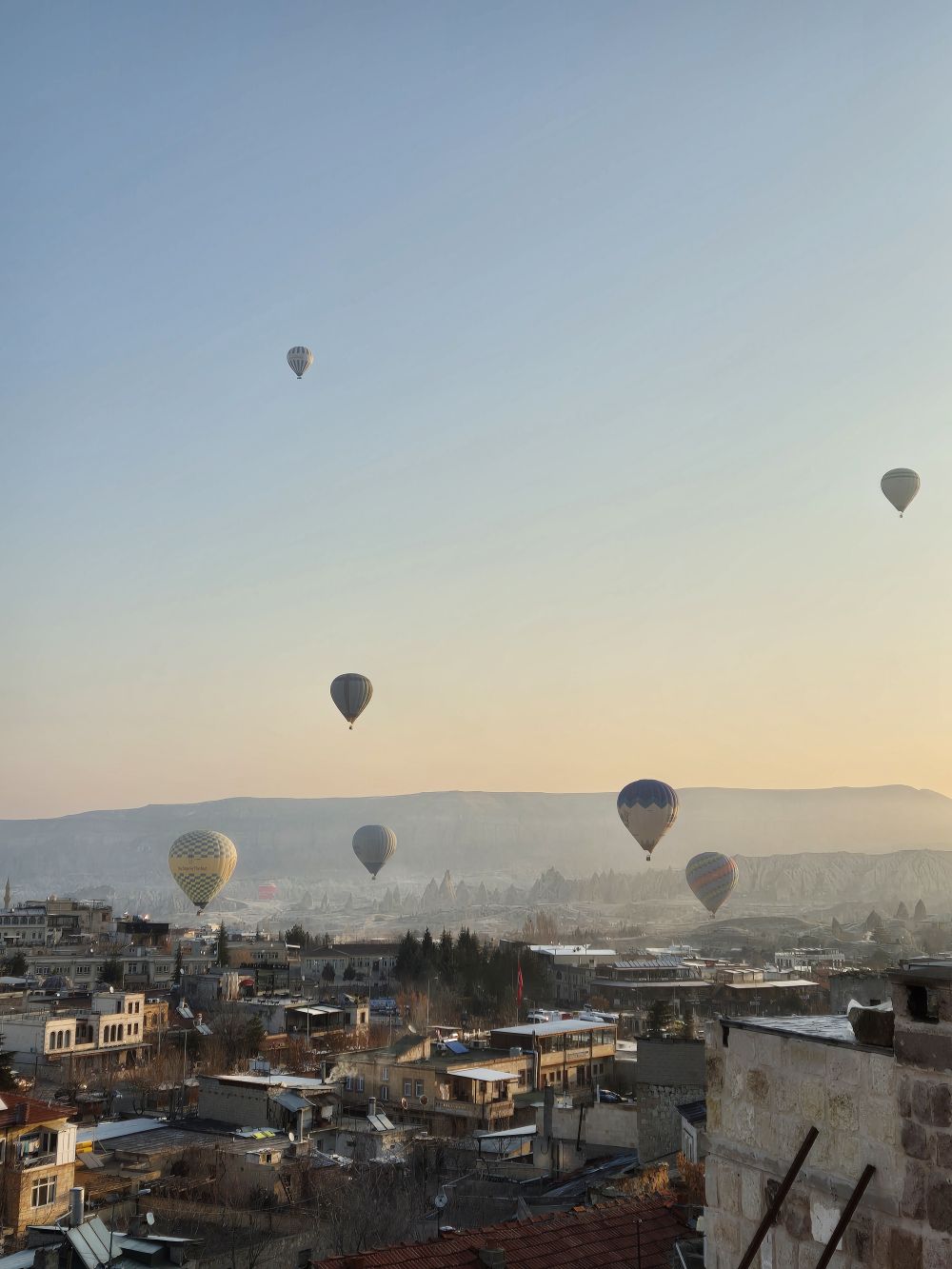 카파도키아 하면 열기구 잖아요. 첫날은 날씨가 맑았는데도 바람이 불어서 열기구가 뜨질 못했는데요. 떠나는 날 새벽 열기구가 떠서 신기하고 몽환적인 경험을 하고 왔어요. 열기구 타는건 처음부터 계획에 없어서 (제가.... 뚫려있는 높은 곳을 올라가지 못해요....) 보는 것만 으로도 정말 좋았어요. 그리고 장금화차장님께서 열기구가 잘 보이는 숙소를 잡아주셔서 따로 높은 언덕을 올라가지 않고 숙소 옥상에서도 멋진 광경을 볼 수 있었어요. 숙소 창문에서도 열기구가 뜨는게 보였고, 옥상에 올라가니 더 잘 보였어요. 열기구 타신 분들이랑 인사도 하는 진귀한 경험도 했답니다.